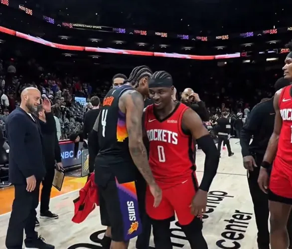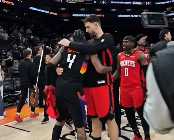 赛后,火箭官方社媒晒出杰伦-格林分别与申京、阿门、范弗利特、霍勒迪互相拥抱致意的瞬间,并配文:“满满爱意。”