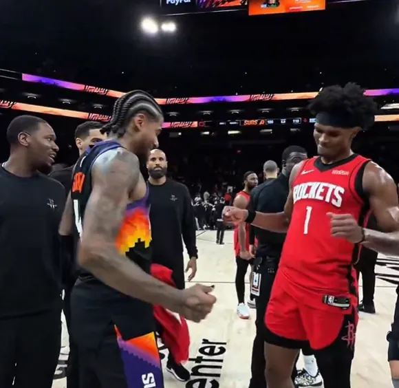 赛后,火箭官方社媒晒出杰伦-格林分别与申京、阿门、范弗利特、霍勒迪互相拥抱致意的瞬间,并配文:“满满爱意。”