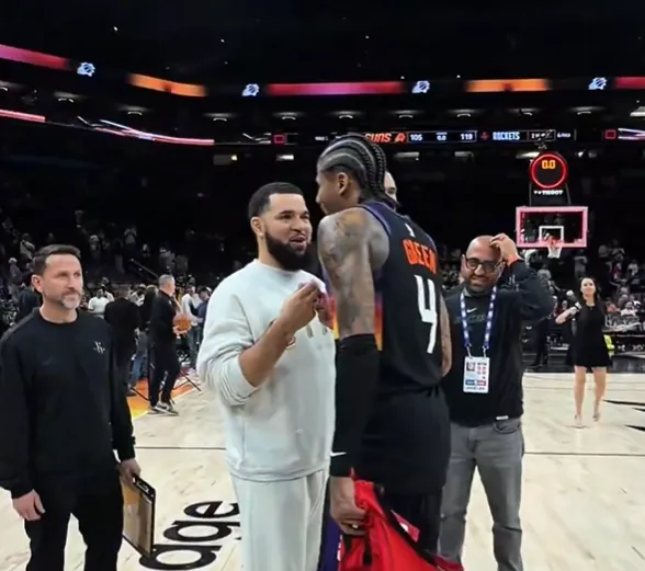 爱游戏官网-满满爱意!杰伦-格林赛后与阿门、申京、范弗利特一一拥抱
